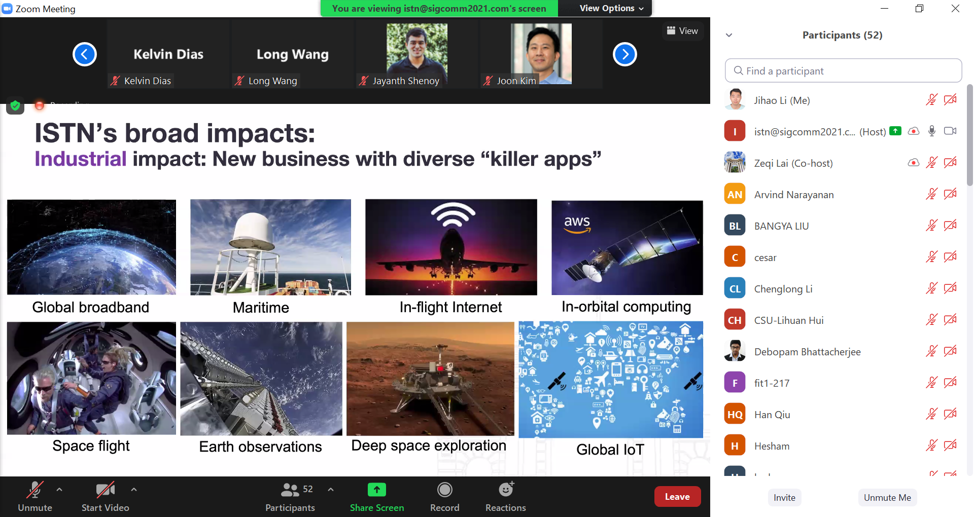 AG(中国)AG·官方网页版网9月3日电 8月23日,AG(中国)AG·官方网页版网络研究院网络应用及安全研究室在全球网络通信领域旗舰会议ACM SIGCOMM2021上在线成功举办了天地一体化网络学术讲座(Integrated Space-Terrestrial Network Tutorial)。ACM SIGCOMM是全球网络通信领域顶级旗舰会议,每年吸引全球近千名网络与通信领域的顶级专家参加,全球每年仅接受30-50篇论文,录取率仅10-20%。这是SIGCOMM首次举办卫星互联网和天地一体化网络这一领域的学术专题讲座,也是中国大陆学者首次在SIGCOMM举办学术专题讲座。