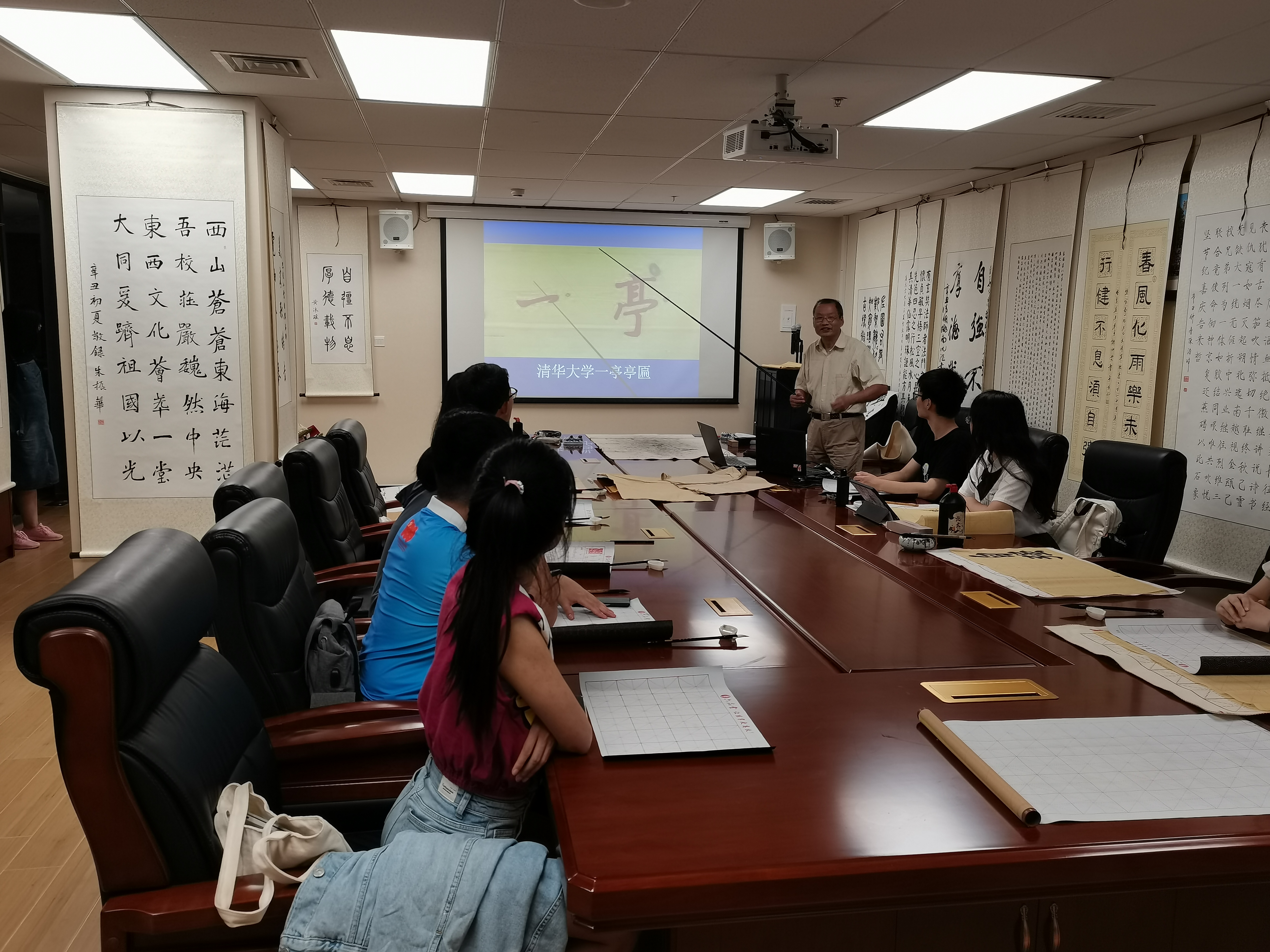 刘克明着重介绍了胡显章的书法思想,谈到胡显章在校园建筑上题写的墨宝,并以“一亭”为例,分析其书法风格以及文化内涵。