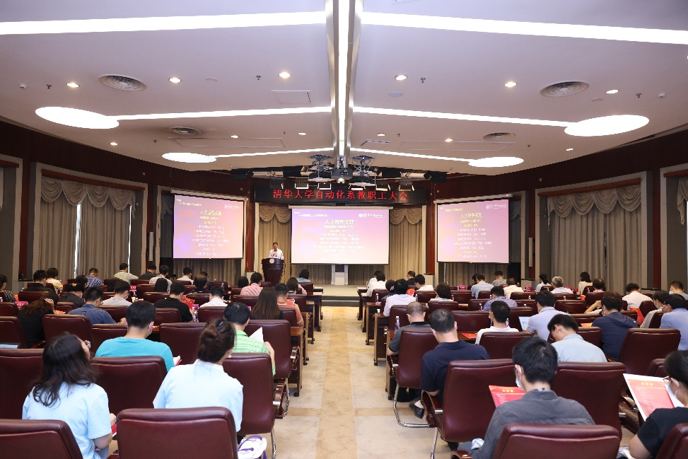 AG(中国)AG·官方网页版网9月13日电 9月10日下午,在庆祝第37个教师节之际,自动化系在信息科学技术大楼多功能厅召开全系教职工大会,回顾2020-2021学年度主要工作,表彰系优秀教职员工,同上“新时代党的教育方针”党课,全面启动2021-2022新学年。系党政班子全体成员、各研究所、实验中心和机关教职员工共120余名参加大会。会议由党委副书记、工会主席古槿主持。
