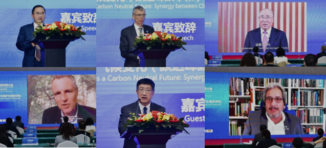 生态系统服务政府间科学平台(IPBES)执行秘书安妮·拉瑞高德瑞(Anne Larigauderie),中科院科技战略咨询研究院副院长王毅,《湿地公约》科技委员会主席、北京林业大学自然保护区学院院长雷光春,大自然保护协会(TNC)全球总裁詹妮弗·莫里斯(Jennifer Morris),英国剑桥大学弗兰克·拉姆齐经济学讲席教授帕萨·达斯古普塔(Partha Sarathi Dasgupta),全球能源互联网发展合作组织副秘书长程志强先后作主旨报告,从经济、能源、湿地生态系统、双碳目标等多重视角分享了应对气候变化和生物多样性保护两个多边进程之间呈现的加强协同、相互促进的趋势。