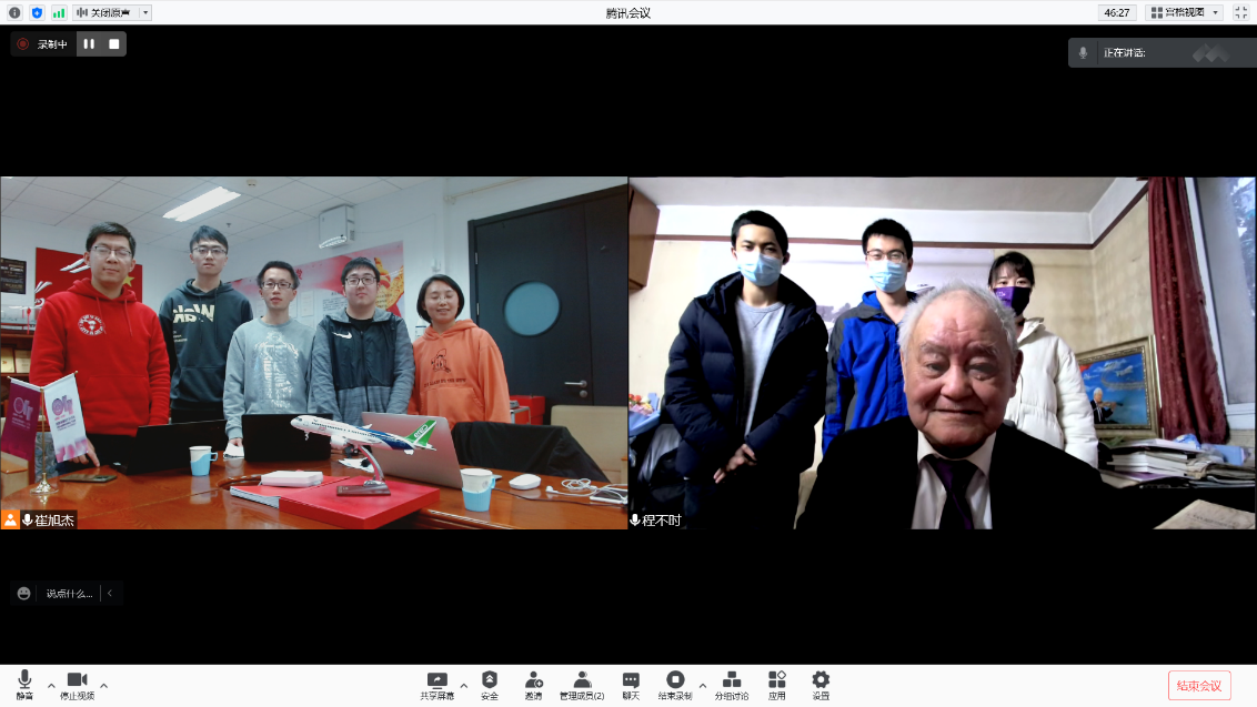 航院2018级航空宇航科学与技术专业博士生戴今钊同学感言说:“程老与顾诵芬、徐舜寿先生肩并肩观看歼教-1起飞的照片给我留下极深的印象。航空前辈们筚路蓝缕,让我们拥有了和平的生活。建立强大航空工业,捍卫祖国和平的信念,也将为我们继承,成为我们今后奋斗的动力。”