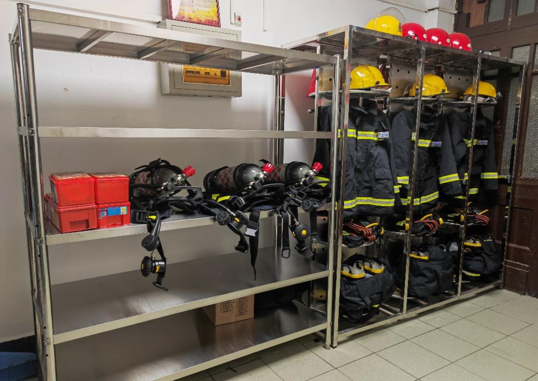 摆放整齐的微型消防站设施设备