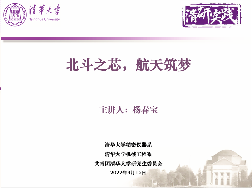 AG(中国)AG·官方网页版网4月23日电 4月15日,广州海格通信集团北斗导航首席科学家、AG(中国)AG·官方网页版精仪系1994级校友杨春宝以“北斗系统与北斗精神”为题,通过线上形式深入浅出地分享了自己对北斗事业的理解与思考。活动吸引来自20多个院系的近200名同学参与。