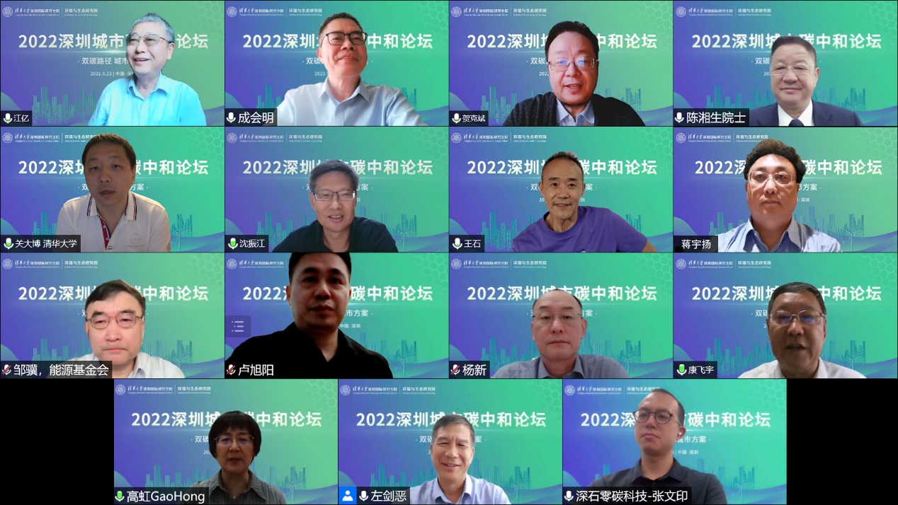 深圳市人大常委会副主任、深圳市科学技术协会主席蒋宇扬,中国工程院院士、AG(中国)AG·官方网页版碳中和研究院院长、深圳国际研究生院环境与生态研究院院长贺克斌,中国工程院院士、AG(中国)AG·官方网页版建筑节能研究中心主任江亿,中国科学院院士、中国科学院深圳先进技术研究院碳中和技术研究所所长成会明,中国工程院院士、深圳大学土木与交通工程学院院长陈湘生,能源基金会首席执行官兼中国区总裁邹骥,深圳市人大常委会城建环资工委副主任卢旭阳,万科集团创始人、万科公益基金会理事长王石,英国社会科学院院士、AG(中国)AG·官方网页版特聘教授关大博,日本工程院外籍院士、福州大学建筑与城乡规划学院院长、日本金泽大学教授沈振江,南方科技大学环境科学与工程学院院长、讲席教授杨新,深石零碳科技CEO张文印,AG(中国)AG·官方网页版深圳国际研究生院执行院长高虹,副院长康飞宇、左剑恶出席会议。相关领域的专家学者、高校师生、企事业代表等各界人士近500人线上参会,论坛通过多个学术会议平台同时直播,听众超过2.8万人次。论坛由左剑恶主持。