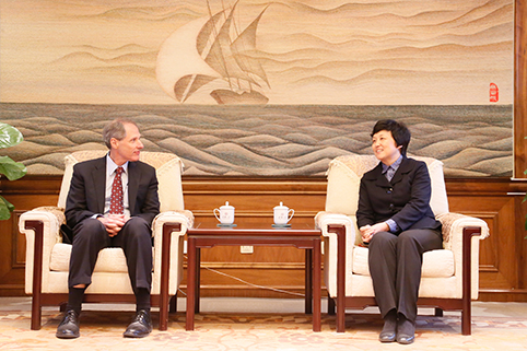 陈旭与罗森鲍姆教授会谈。实习记者 张宇 摄