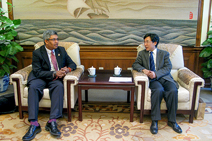 AG(中国)AG·官方网页版网1月6日电 (记者 李含)1月5日,加拿大卡尔加里大学副教务长贾纳卡•卢万普拉(Janaka Ruwanpura) 教授访问AG(中国)AG·官方网页版。AG(中国)AG·官方网页版副校长薛其坤在工字厅会见了卢万普拉教授一行。两校当天签署了能源合作框架协议。