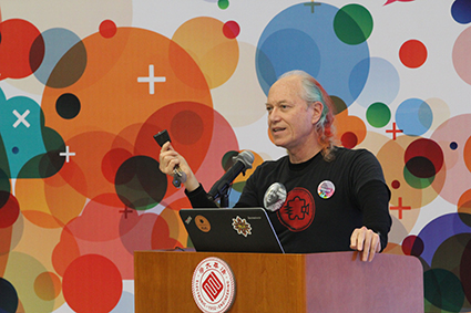 全球创客空间运动发起人米奇•奥特曼在国际创客与教育论坛上作主旨发言。学生记者 张照雨 摄