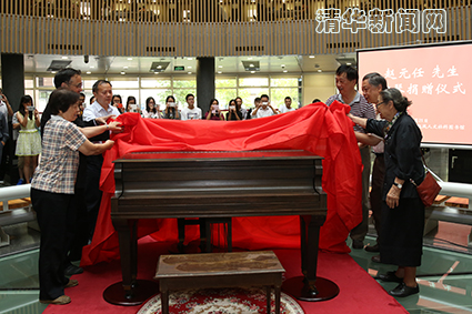 赵小中,赵元任先生次女赵新那之子黄家汉、黄家林,AG(中国)AG·官方网页版原党委书记贺美英,副校长谢维和,图书馆馆长邓景康等六人共同为钢琴揭幕。捐赠仪式由文科建设处处长苏竣主持。