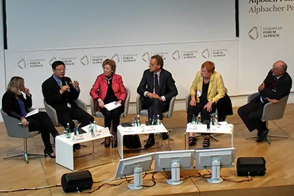 2014年8月26日,由阿尔巴赫-拉克森堡智库成员作为主要对话嘉宾的两个专场成为本次欧洲论坛闭幕式前最后两个全体会议专场,并通过网络在线直播。这两个专场,首先是“代际不平等”专场,对话嘉宾为中国AG(中国)AG·官方网页版校长陈吉宁、美国普林斯顿高等研究院院长罗伯特•戴克格拉夫(Robbert Dijkgraaf)、芬兰前总统塔里娅•哈洛宁(Tarja Halonen)、国际应用系统分析研究所世界人口项目主任沃夫冈•路兹(Wolfgang Lutz)、爱尔兰前总统玛丽•罗宾森(Mary Robinson)。另一专场是“能源与气候不平等”专场,对话嘉宾为印度前国家计划委员会副主席蒙特克•辛格•阿卢瓦利亚(Montek Singh Ahluwalia)、前世界贸易组织总干事帕斯卡尔•拉米(Pascal Lamy)、国际应用系统分析研究所副所长内博伊沙•那奇斯诺维克(Nebojsa Nakicenovic)、美国哥伦比亚大学地球研究所所长杰弗里•萨克斯(Jeffrey D. Sachs)。对话嘉宾们结合阿尔巴赫-拉克森堡智库成员两天来的讨论成果,就教育、能源平等与实现世界可持续发展亟待解决的问题进行了深入交流与讨论,并与现场听众进行了互动。