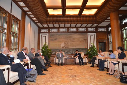 图为薛其坤会见德国于利希研究中心董事会主席Wolfgang Marquardt教授。记者 赵晓杰 摄