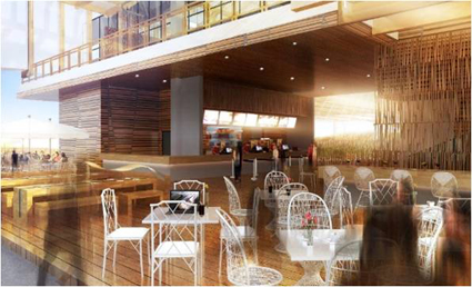 在更多的时候,室内与室外、建筑与景观的界限已经消融。在汪建松负责设计的首层半开放式餐饮区,参观者闲坐在中国韵味的竹编飞檐下,远眺前方,一望无际的麦田闪耀在地中海的灿烂阳光中。它既是室内又是室外、既是建筑又是景观,轻松随意、却能带来丰富而浪漫的感受。