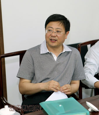 图为汪晖汇报研究所各项工作进展情况。记者 智斐 摄