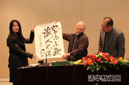 图为张世礼老先生向清华美院赠送墨宝。