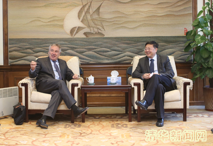 图为陈吉宁与ALPIQ公司董事长Hans Schweickardt先生交谈。记者 智斐 摄