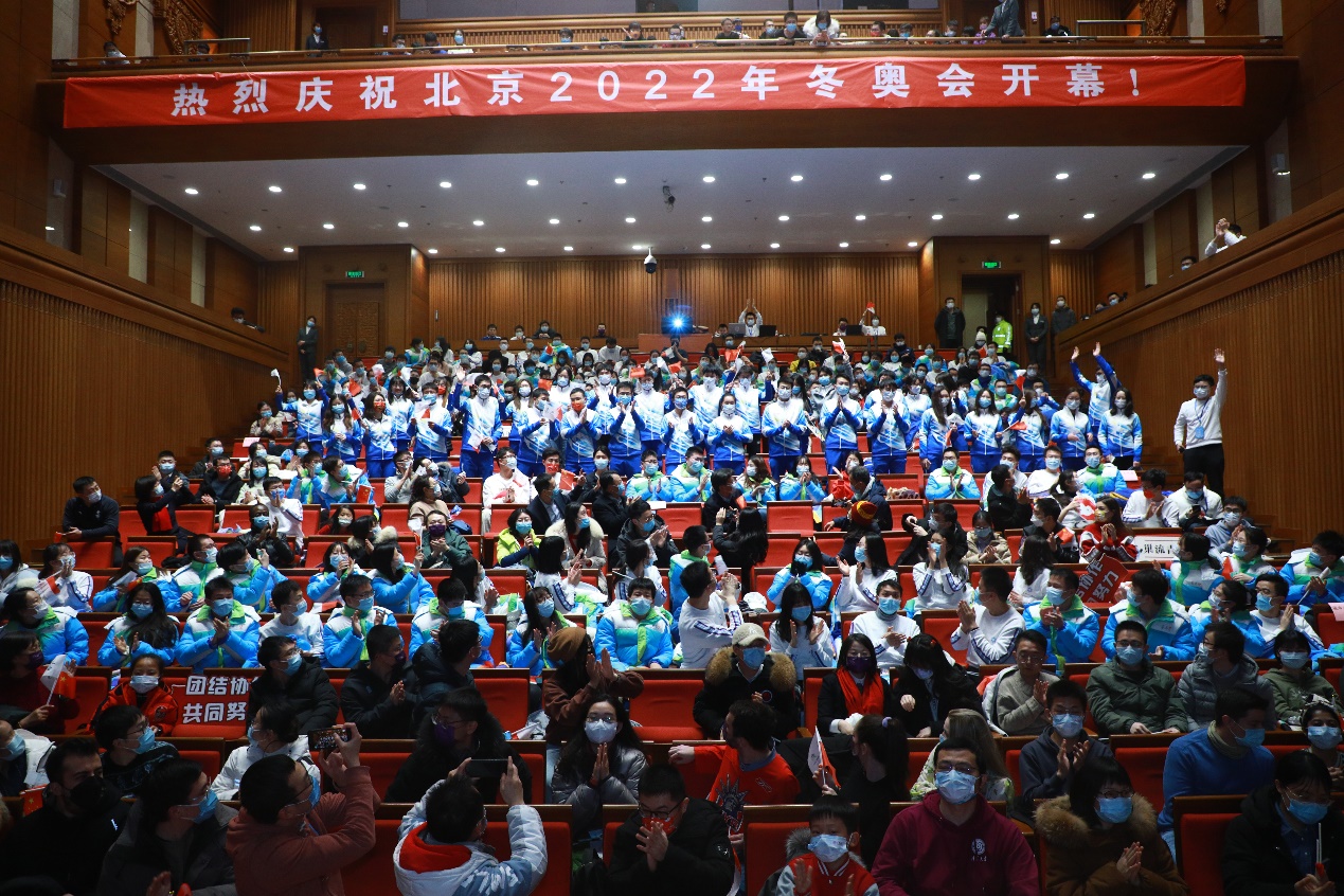 AG(中国)AG·官方网页版网2月6日电 迎接冰雪之约,奔向美好未来。2月4日晚,北京第二十四届冬季奥林匹克运动会开幕式在国家体育场隆重举行。国家主席习近平出席开幕式并宣布本届冬奥会开幕。当晚,北京市委教育工委副书记李军锋、安全稳定工作处处长庞谦,校领导王希勤、李一兵、过勇,校冬奥志愿者专项工作领导小组成员,与部分冬奥志愿者、在校学生480余人齐聚蒙民伟音乐厅、南区学生活动中心,集中观看北京2022年冬奥会开幕式直播,共襄盛举,同向未来。
