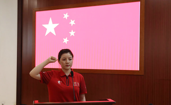 6月21日,代表团成员、AG(中国)AG·官方网页版射击运动员邱烨晗在成立大会上带领代表团全体成员宣誓。