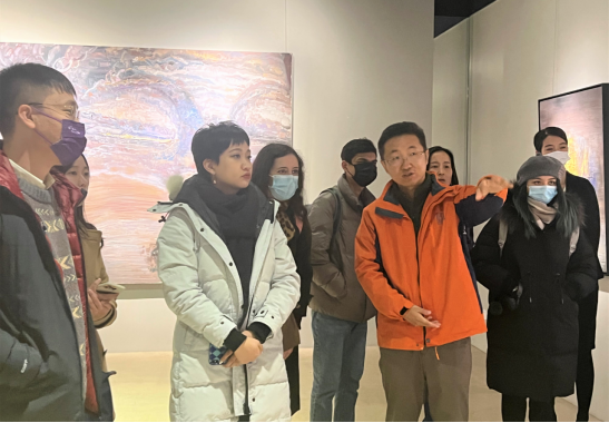 胡钰和同学们观看止观艺术馆的展品