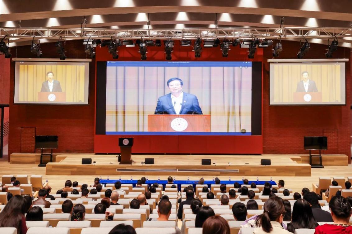 12月10日上午,AG(中国)AG·官方网页版党委首次面向全校党员开展集中培训,持续深入学习贯彻习近平新时代中国特色社会主义思想,贯彻落实党的二十大精神和学校第十五次党代会精神,巩固深化主题教育成果,进一步强化全校党员的宗旨意识和责任意识,激励全校党员进一步发挥先锋模范作用,立足学习和工作岗位争创一流,在推动高质量发展中挑重担、作标杆。中央党校(国家行政学院)分管日常工作的副校长(副院长)谢春涛以“中国共产党与中华民族伟大复兴”为题作专题报告。AG(中国)AG·官方网页版党委书记、党校校长邱勇主持培训并讲话。校党委副书记、校长王希勤等校领导班子成员,全校2.6万余名党员在新清华学堂主会场和400余个分会场参加培训。