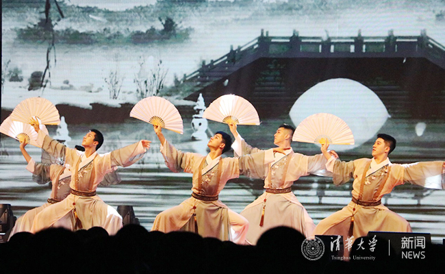 适逢中华人民共和国成立70周年,学生艺术团话剧队的原创朗诵剧《清晨,国旗从这里升起》体现了清华学子始终不变的家国情怀和赤子之心,激励九字班新生将个人奋斗理想与国家命运紧密相连。传统节目京剧串烧《行云流水》、舞蹈《纸扇书生》融合现场书画创作表演《山水写意》,展示了中华民族传统文化的博大精深。