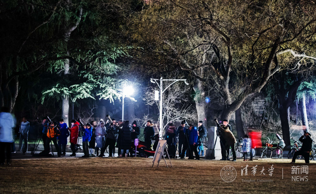 北京冬夜的严寒没有阻碍爱好者们的热情。紫荆操场的观测活动有清华师生等六百多人参加,天文台也有二十多人次参加。清华学生天文协会的同学们给大家提供了专业观测设备,现场科普讲解关于月食、星空的天文知识 。