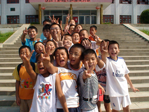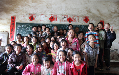 到贫困地区支教的清华学生与快乐的孩子们。