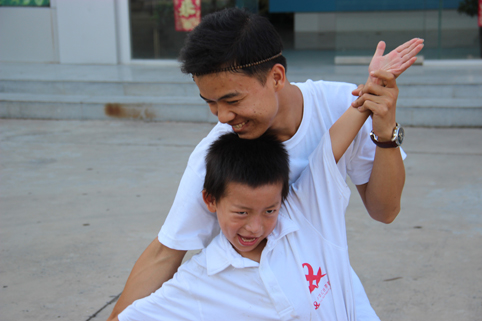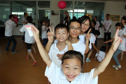 图为赴安徽阜阳关爱艾滋致孤儿童实践支队的队员与孩子们一起。