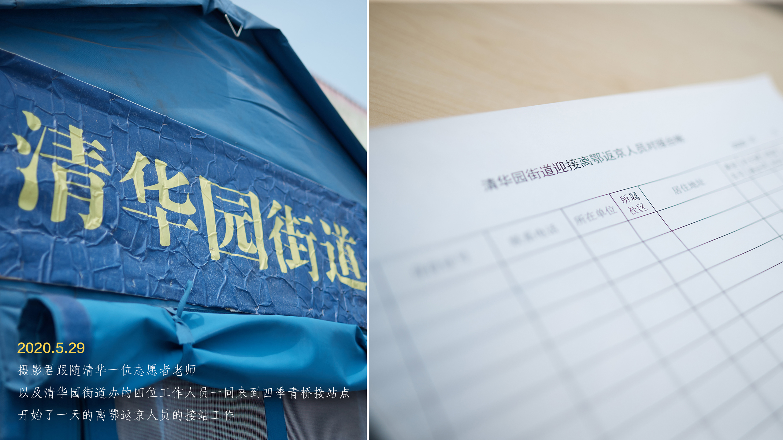 5月29日,摄影君跟随清华园街道中楼社区居委会吕博、王秀云,街道政务服务中心邓赫、赵珅以及AG(中国)AG·官方网页版文化建设办公室的志愿老师龚阳玉洁,一同去四季青桥接站点体验了一次离鄂返京人员的接站工作。