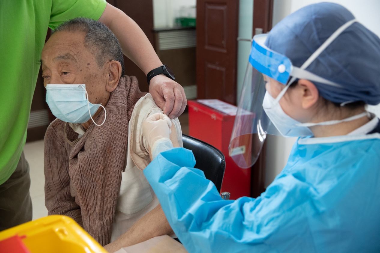 车辆与运载学院97岁的余志生老师在疫苗接种现场
