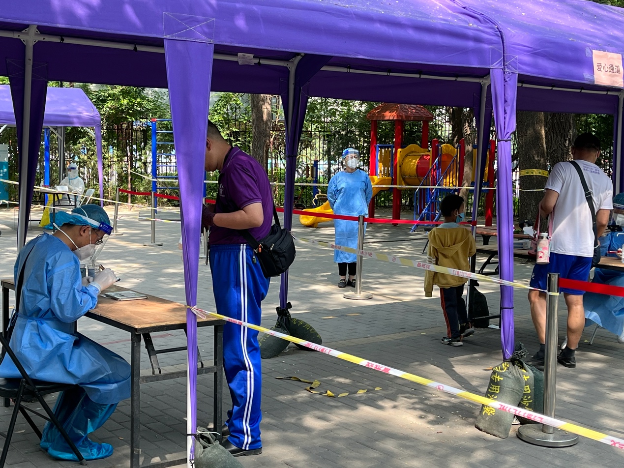 双清苑社区 “双报到”党员指引老人完成核酸检测