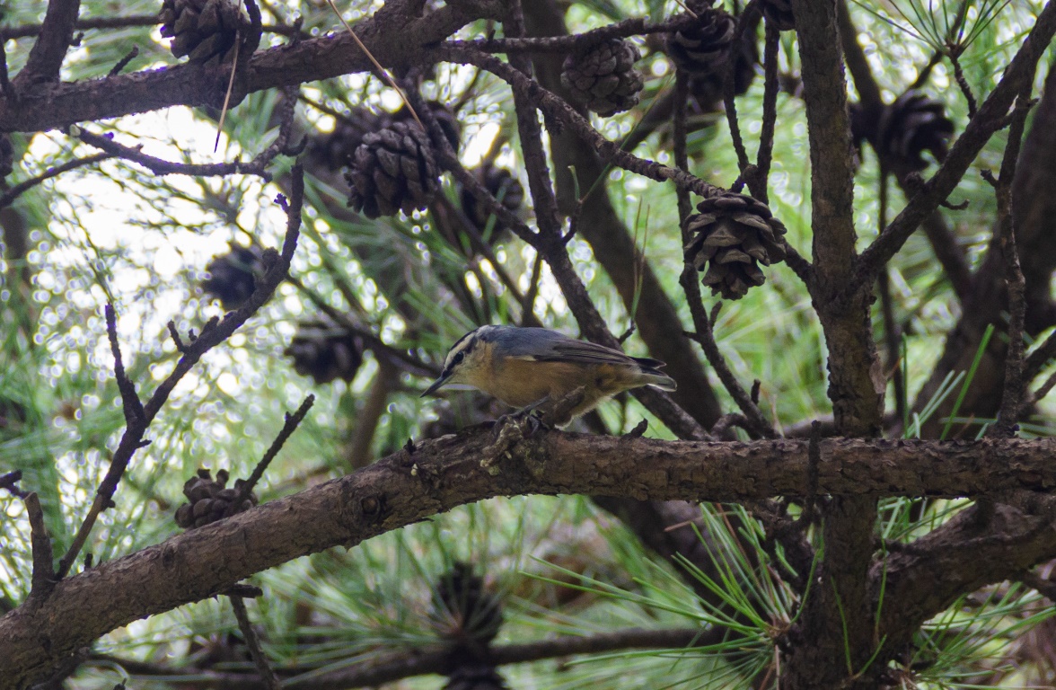 松树林中一串神秘的叫声告诉我们这里有着名叫黑头鳾的小鸟,它那黑色的头顶、宽阔的白色眉纹和黑色过眼纹,仔细看很是漂亮。即使没有望远镜,我们依然可以欣赏到它在树干上寻觅小虫子时蹦蹦跳跳的舞姿。黑头鳾喜欢头朝下寻找树皮中的虫子,因此民间有“贴树皮”的形象俗称。