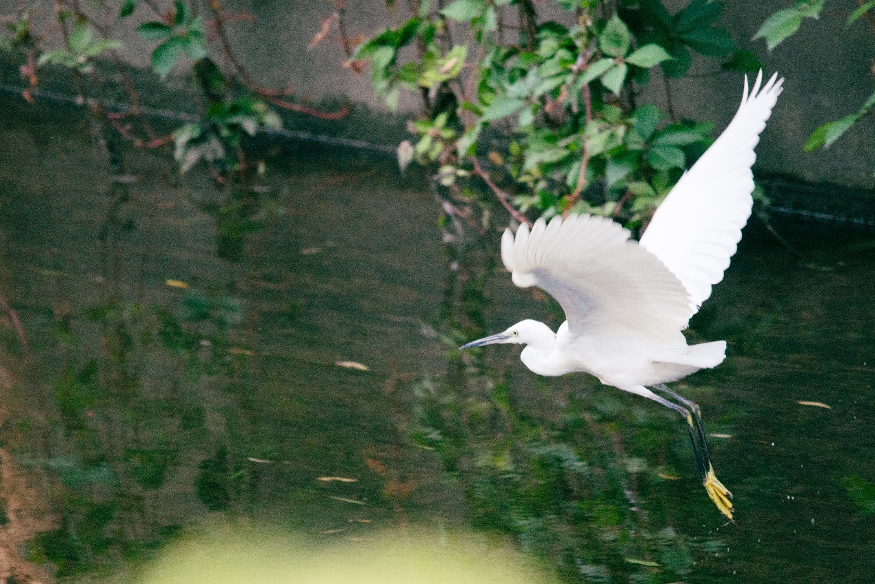 如果你是一只“早起的鸟儿”,常会有意想不到的惊喜——清晨的校河是白鹭的世界。它们全身雪白,青黑色的大长腿和像穿了双黄袜子的黄色趾,仙气十足。
