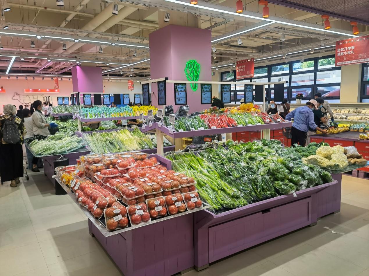 新超市靠近家属区,在招标过程中,商贸中心充分考虑这一特点,尽量选择相对传统的企业,主要保障好蔬菜水果、粮油米面等商品的供应。经过对10余家商超企业的线下、线上调研和综合评分,最终引入了以生鲜为核心产品、服务优质的超市。同时为了照顾老年顾客的支付习惯,超市保留了全渠道结算方式,除了微信、支付宝和自助结账机器,也支持现金、银行卡和老年卡等结算。