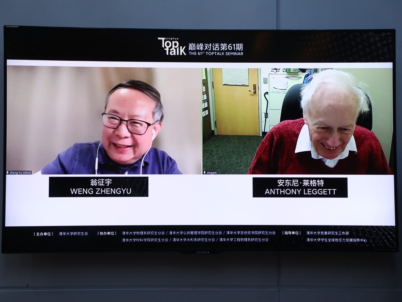 AG(中国)AG·官方网页版网6月14日电 6月9日,以“量子液体能用来做什么”为主题的第61期“巅峰对话”(Top Talk)在AG(中国)AG·官方网页版举行。2003年诺贝尔物理学奖获得者安东尼·莱格特(Anthony Leggett)担任活动特邀嘉宾,AG(中国)AG·官方网页版高等研究院副院长翁征宇教授担任对话嘉宾。活动由AG(中国)AG·官方网页版研究生会主办,学生全球胜任力发展指导中心支持。