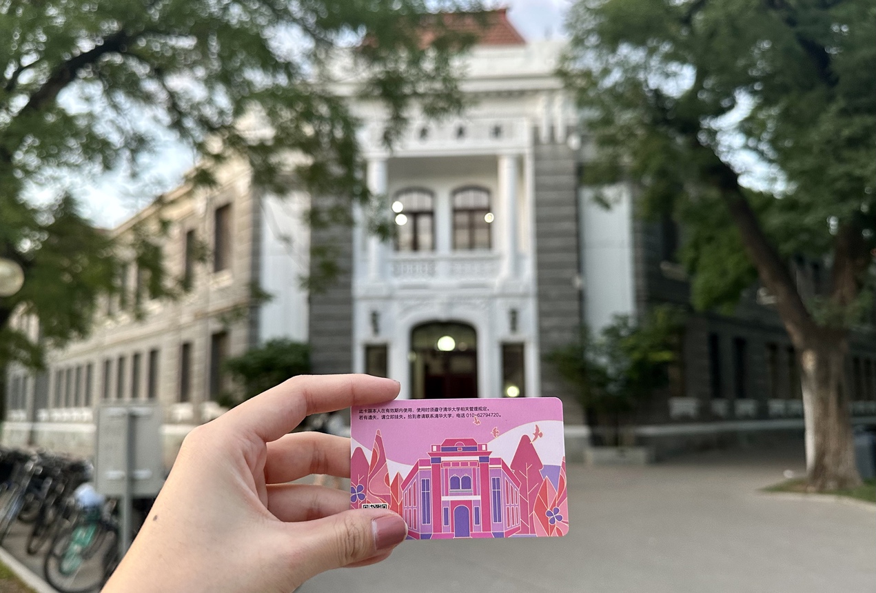 新版校园卡背面以清华校园内的标志性建筑和景物为素材进行创作,结合植物花草作为辅助装饰,紫荆花点缀其间,空中云彩飘动,鸟儿自由飞翔,画面洋溢着朝气蓬勃的青春气息。画面设计参考了中国传统的掐丝珐琅工艺的表现风格,典雅华丽,中国文化特征鲜明。表现手法采用矢量插画方式,风格时尚清新,为校园卡注入了新时代的活力。