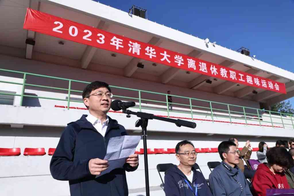 许庆红代表学校向参加运动会的离退休教职工、服务运动会的裁判员、志愿者以及全体工作人员表示亲切的问候和衷心的感谢。他表示,学校非常重视离退休教职工的文化生活,努力为大家提供便利条件,营造良好氛围。希望大家通过运动会这一“沟通、交流、展示”的平台,弘扬清华体育传统,促进日常健身运动的深入开展,按照运动会“安全、健康、友谊、快乐”的宗旨,做到安全第一、健康快乐,展现出良好的精神风貌和身体素质。