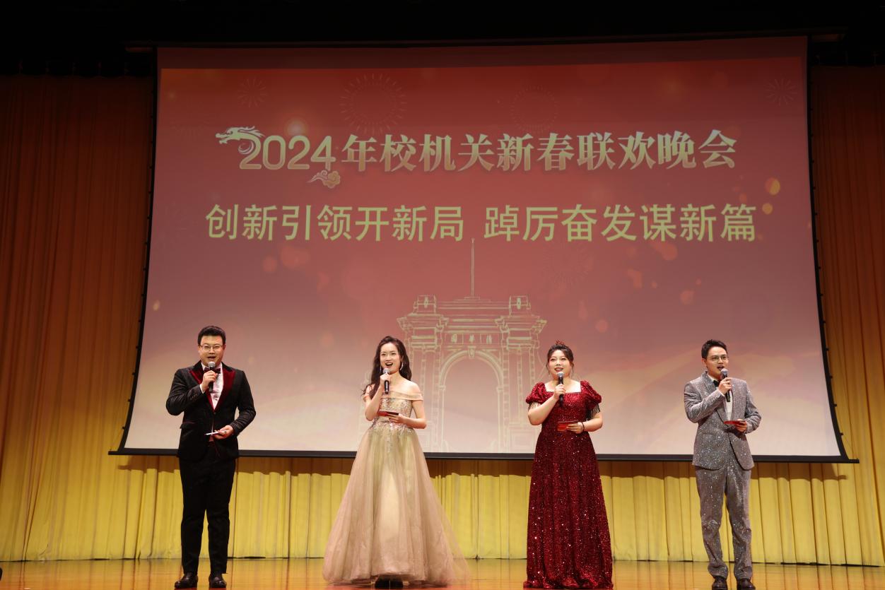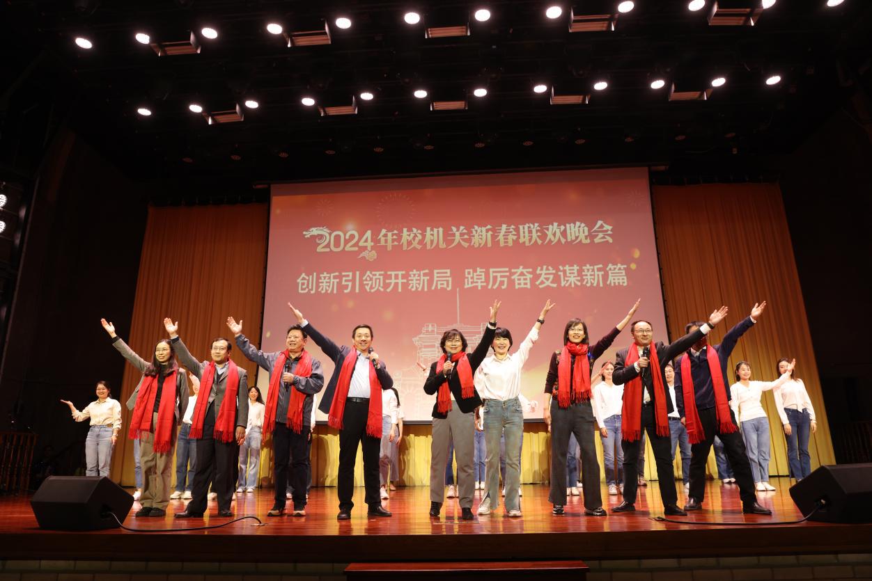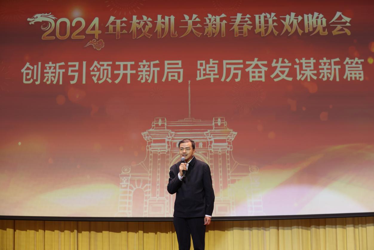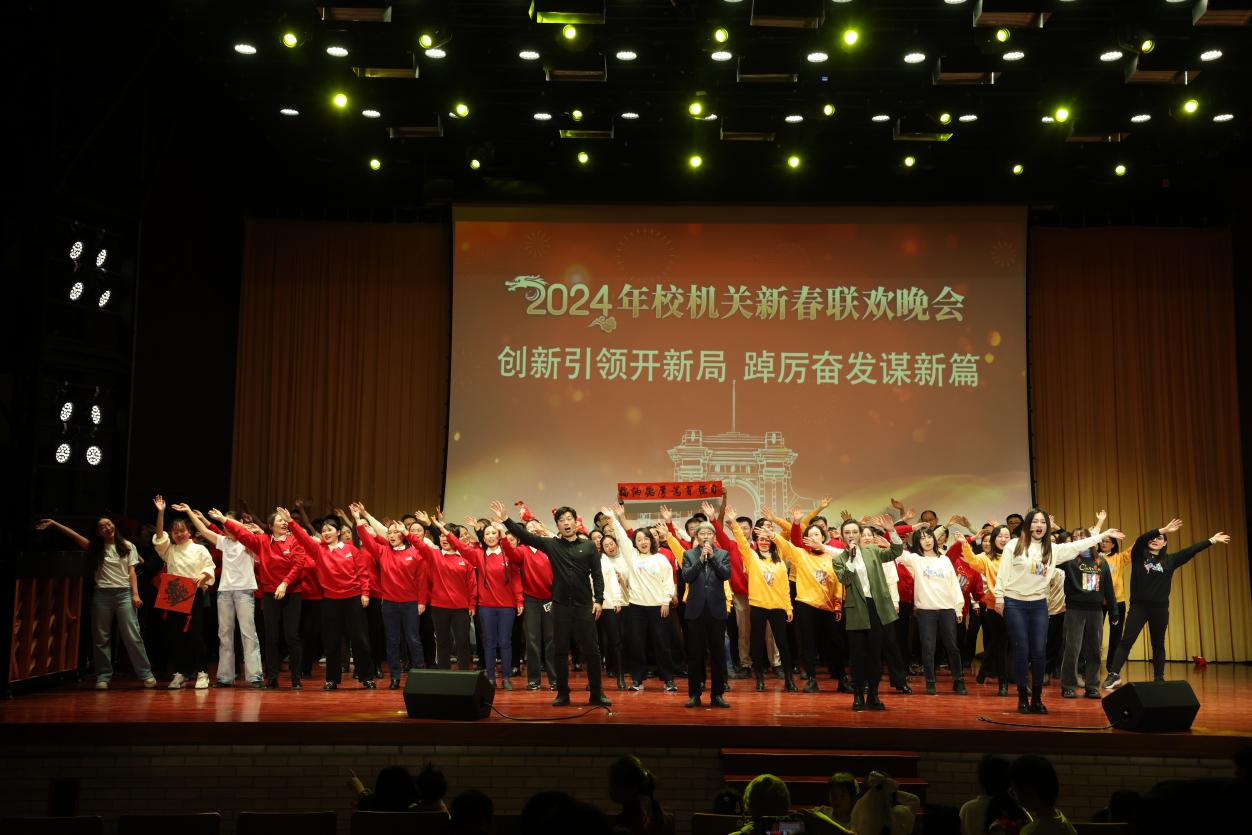 AG(中国)AG·官方网页版网1月29日电 1月23日晚,AG(中国)AG·官方网页版2024年校机关迎新春联欢晚会在大礼堂举行。校党委副书记、工会主席向波涛出席并致辞。校机关各部处负责人与700余教职员工、离退休老同志欢聚一堂,共迎新春。