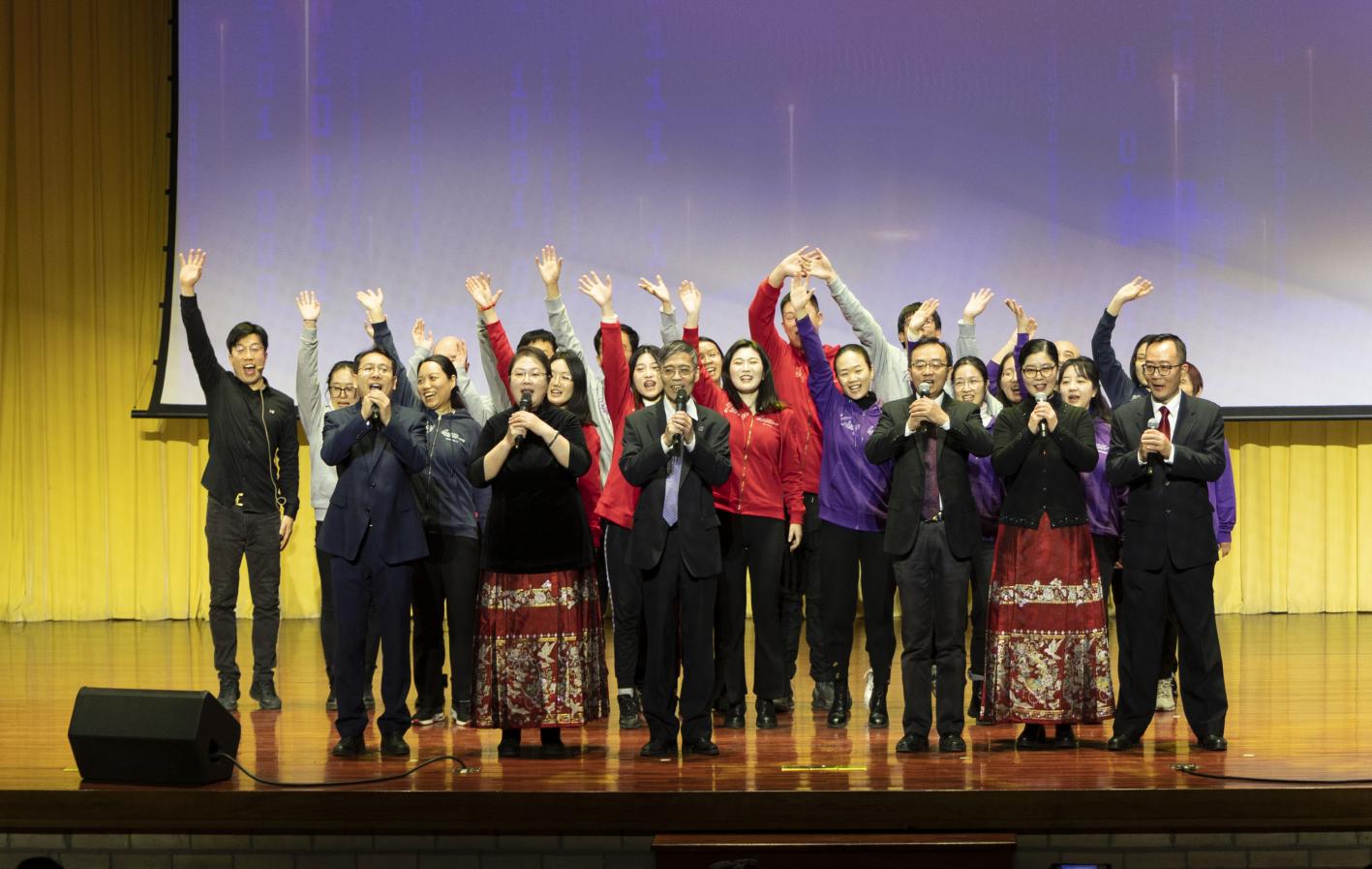 在最后的篇章中,财务处的舞蹈《领航》坚韧而有气势,赢得一片掌声。人事处带来的歌曲《国家》,唱出了清华人与祖国同呼吸共命运的家国情怀。党政办、保密办、政研室《新气象 再出发》,让大家看到这群平日忙碌年轻职工们的多才多艺以及对未来的信心和期盼。教务处温馨合唱《灯火里的中国》,展现了祖国的繁荣景象和人民的幸福生活。