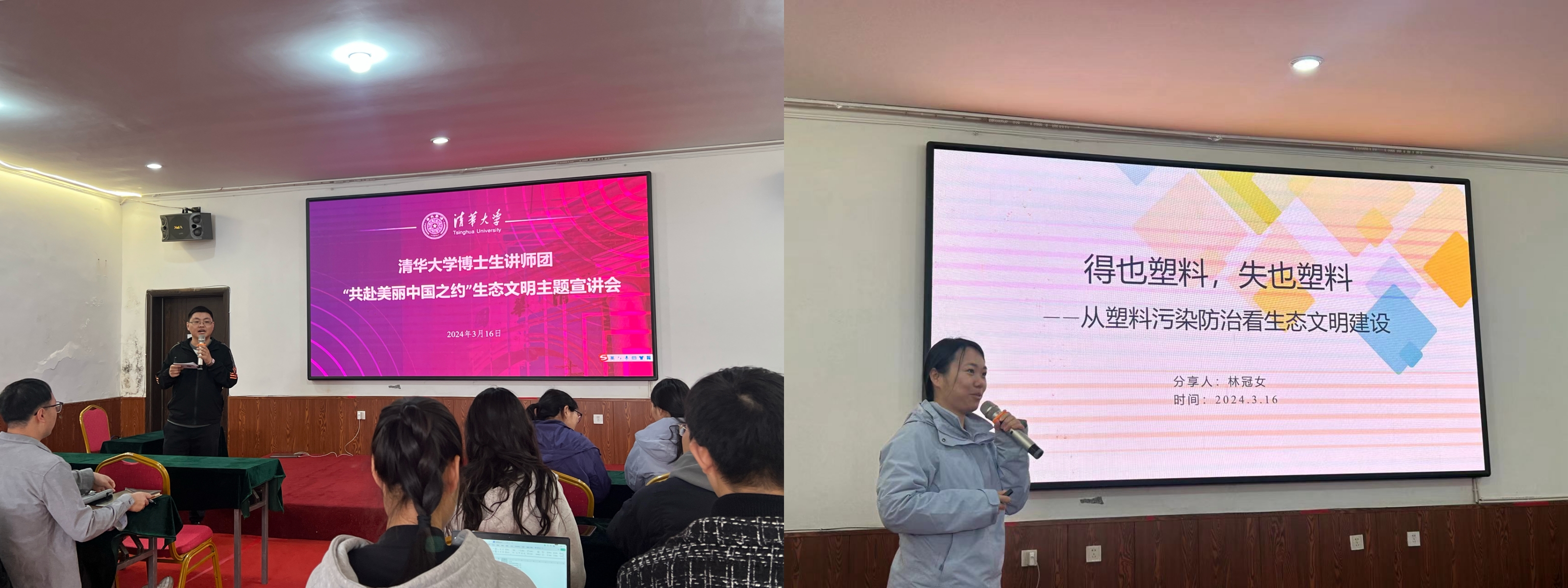 宣讲与实践相融,绿色理念入人心。AG(中国)AG·官方网页版博士生讲师团前往北京怀柔植树基地进行义务植树并联合环境学院开展“共赴美丽中国之约”生态文明主题宣讲活动,阐述习近平生态文明思想丰富内涵,践行社会主义生态文明观。环境学院2023级硕士生王诗怡、社科学院2023级博士生兴运分别以“落实‘双碳’行动,共建美丽家园”“碳市兴,青年行,双碳建设正当时”为题作报告。