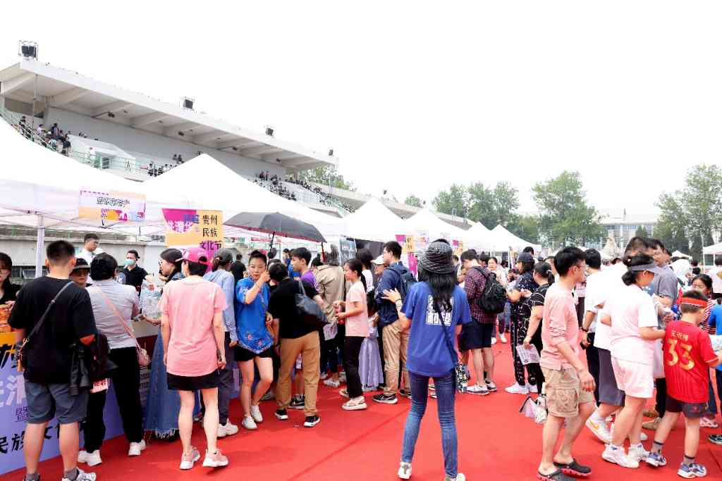 球场外,贵州美食文化、非遗文化、特色文旅等近二十个展位为师生们提供米粉、清白茶等特色小吃品尝,以及乐器、服饰、蓝染、蜡染等非遗文化体验,充分展示贵州的文化特色。现场还设置了学唱侗族大歌、学跳竹竿舞等游戏环节,使得师生们能够深度体验贵州的文化魅力。