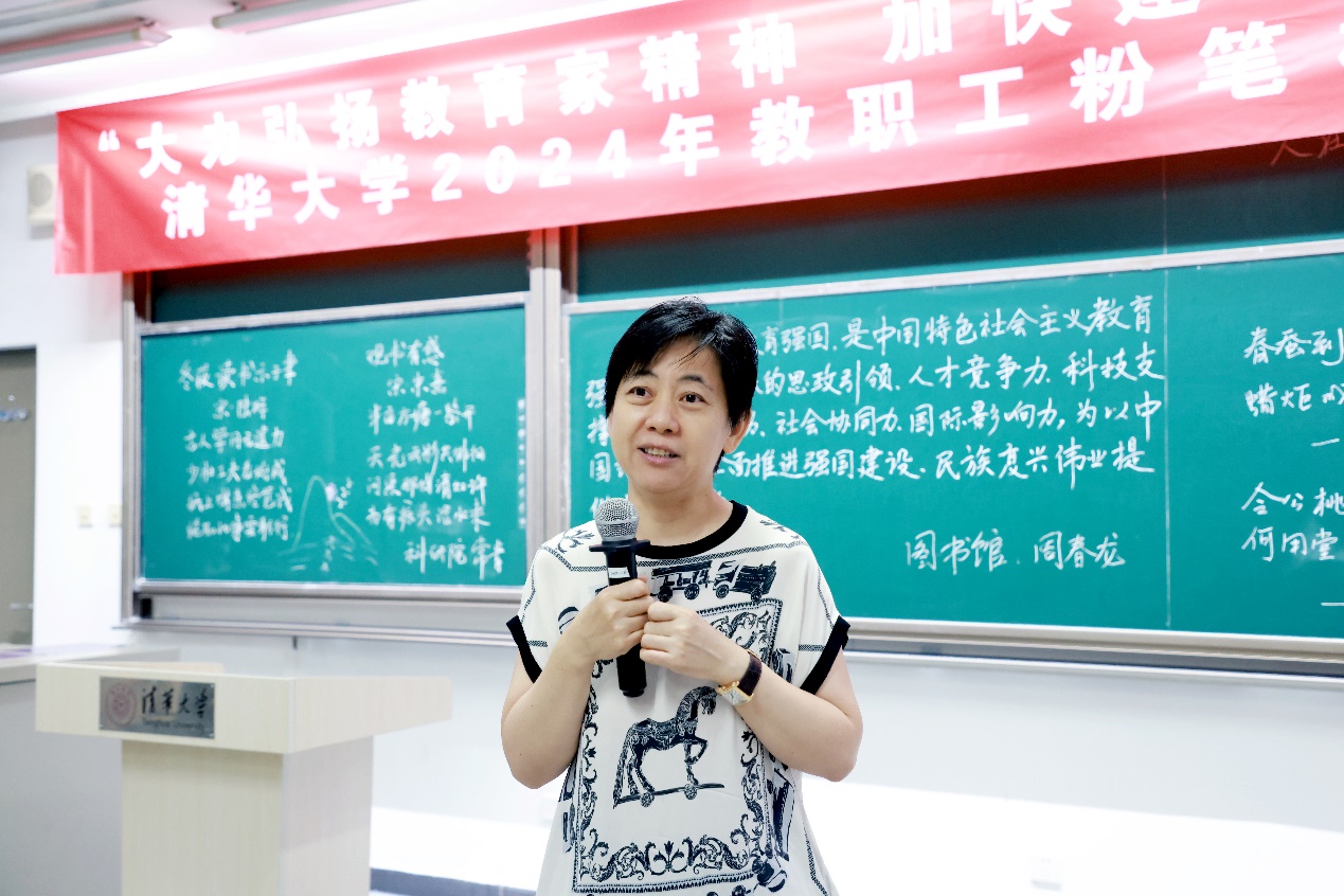 解小青表示,粉笔板书比赛兼具创新思维和怀旧情结,体现人文温度。她以身边的例子回忆老一辈人对写字这项活动的珍视,并表示在历史上一些艺术活动逐渐消失的背景下,科技越发达,手写越珍贵。她表示,人们的向美之心是一致的,期待板书比赛作为常青项目,能够在教职工中产生更多创新想法和艺术碰撞。
