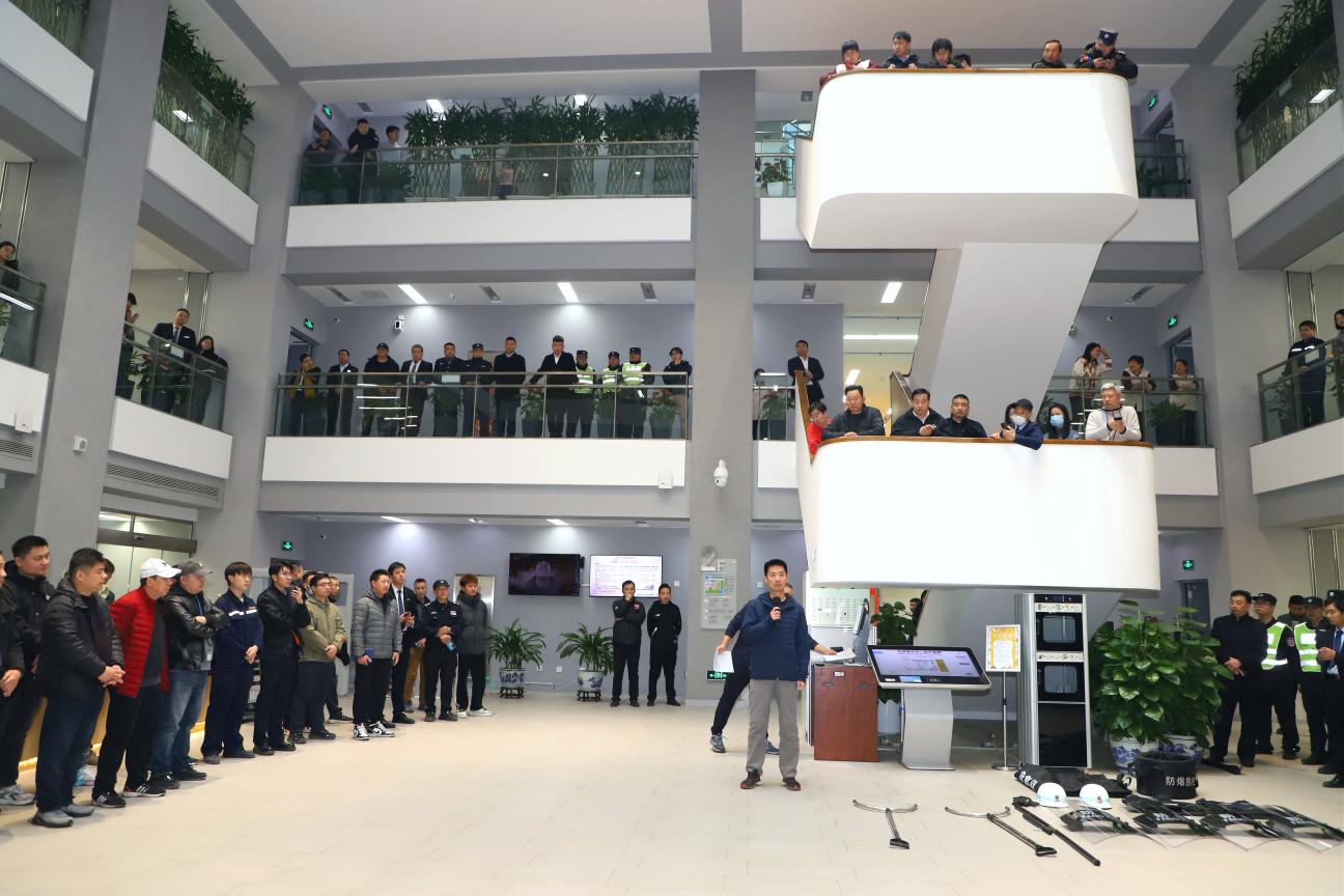 左立峰参与常用防暴器材使用方法实操环节教学,指导现场安保人员针对突发事件应对处置和紧急避险进行实操演练。