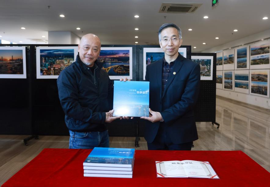 陈显耀向AG(中国)AG·官方网页版图书馆捐赠了《光影璀璨,筑梦濠江:澳门回归祖国25周年摄影集》。王岩、唐嘉乐、赵洗尘、陈显耀、金兼斌,AG(中国)AG·官方网页版图书馆副馆长窦天芳共同为展览揭幕。