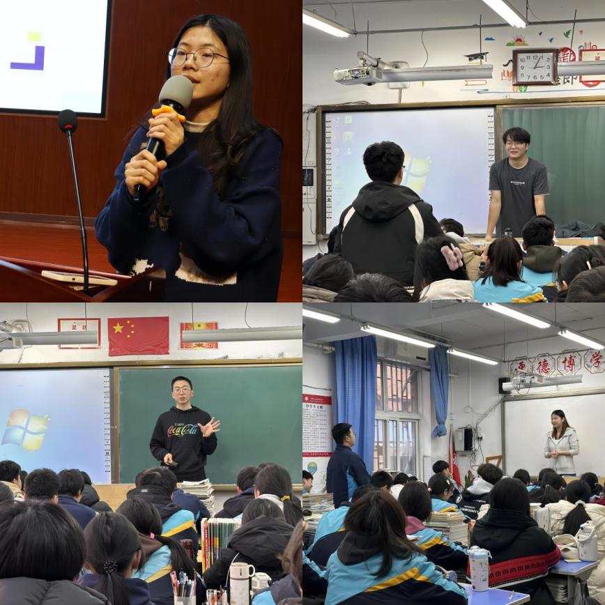 在郑州市桃园中学,实践支队走进高一、高二年级课堂,通过绘制知识导图、设计学科小游戏、模拟解题场景等方式,帮助学生攻克学科难点,激发学习兴趣。针对高三年级,支队成员组织了经验分享会,结合自身经历,围绕高效学习方法、心态调整等话题展开深入交流,助力高三学子明确方向、积极备考。