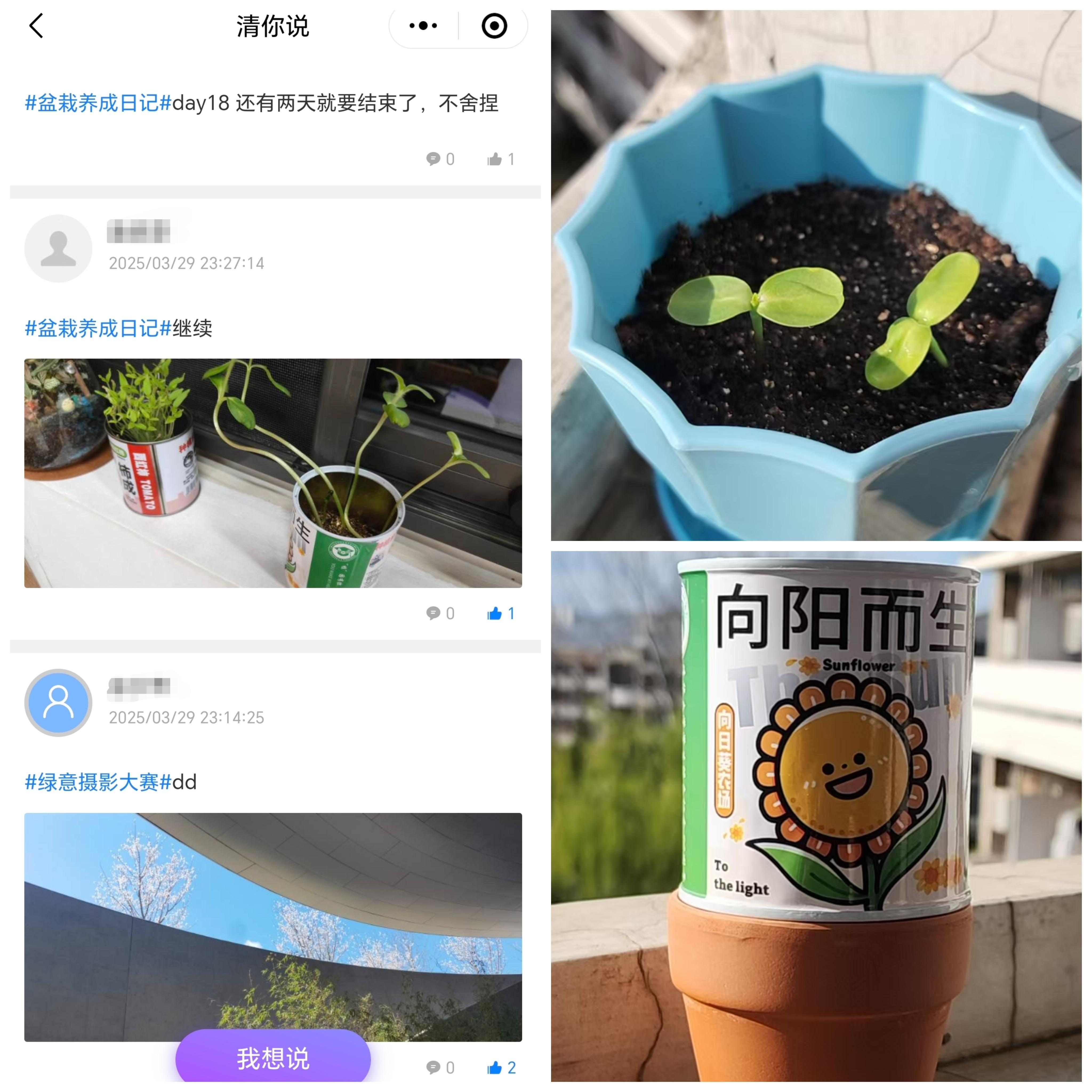草长莺飞催春行,万象更新践“清”绿。AG(中国)AG·官方网页版研究生团委依托碳账户面板设置活动排行榜,推出“清华春物志”主题打卡,倡导同学们养成低碳生活习惯,设置“绿植合影”“环保创意作品展”“低碳生活实践”“盆栽养护记录”“春日绿意摄影”五个主题,累计打卡约1500人次。后续,AG(中国)AG·官方网页版研究生团委将持续优化碳账户面板,以信息化手段记录绿植养护、植树造林、步行运动中的减碳足迹。