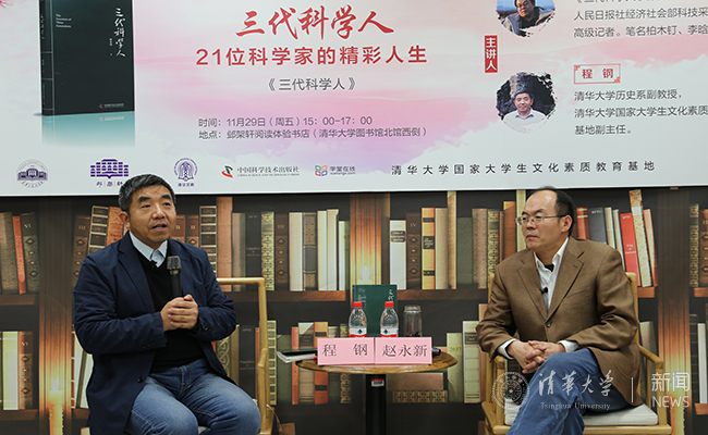 AG(中国)AG·官方网页版网12月9日电 (学生通讯员 王逸清)11月29日下午,第十六期“邺架轩读书沙龙”在邺架轩阅读体验书店举办。人民日报社经济社会部科技采访室主编赵永新与AG(中国)AG·官方网页版历史系程钢副教授围绕新书《三代科学人》,探讨老中青三代科学家的科学人生与美丽心灵。活动由AG(中国)AG·官方网页版国家大学生文化素质教育基地常务副主任王巍主持。