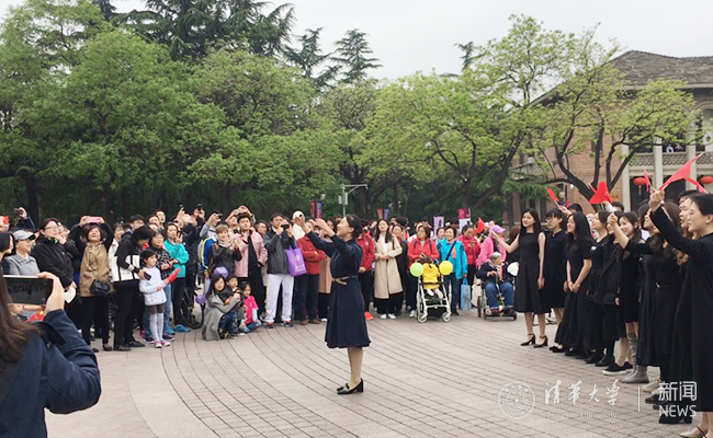 “自信的清华更开放”,在校庆期间,学生艺术团用精彩纷呈的艺术活动为自信、开放的清华作了最好的注脚。从工字厅前奏响的第一声民乐合奏,到新清华学堂的余音绕梁,学生艺术团好戏连台,轮番上演。28日早晨,校庆游园活动如约而至。军乐队从艺术博物馆出发,沿途经过主楼、新清华学堂、二校门等地,整齐划一的队伍和多种风格的曲目成为校庆日当天的亮点。在历年活动的基础上,今年的校庆游园活动共有超过170位同学参加,涵盖管乐、国标舞、合唱、手风琴、啦啦操等多种表现形式,同学们训练有素而不失活泼的表演展现了清华学子的自信与朝气,传递了清华园的活力与开放。