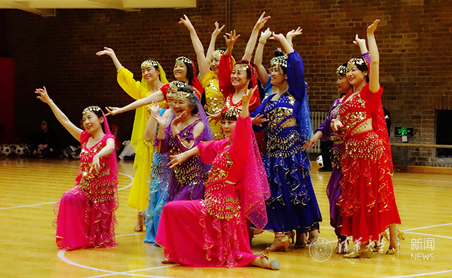 随后,原体操队员们由昔日在校时的教练、已逾八十高龄的陈蒂侨教授领舞,献上了精彩的印度舞表演。