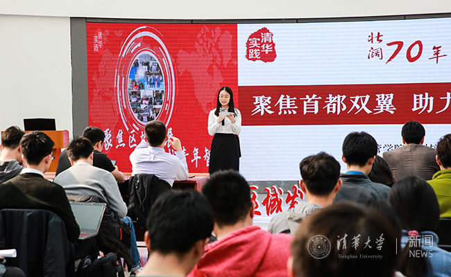 本次总结会聚焦建国七十周年,以“聚焦区域发展 贡献青年智慧”为主题,分为“聚焦首都双翼,助力协同发展”“追寻丝路足迹,传承思路梦想”“调研湾区建设,探索互联互通”三个主题,展示了清华学子聚焦区域发展的寒假实践成果。
