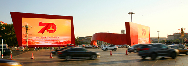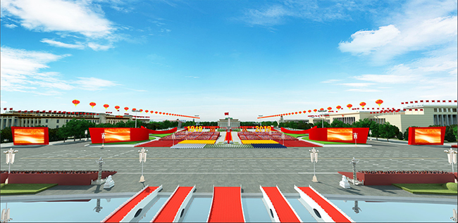 “天安门广场是一个方形广场,‘红飘带’呈空间曲面形式,座落在广场两侧绿地中,它能够在广场原有庄严肃穆的基础上,增加灵动欢乐的气氛,用聚合的方式让人民群众对庆典有更直接的参与感。”马赛介绍说。为了便于阅兵、彩车和游行互动,现场还设立了6块大屏幕,针对不同主题,呈现不同的画面。“一来可以补充历史画面和资料,更好激发广场的热烈气氛,同时也能够呈现盛典实况,为观礼群众提供更好的服务,激发现场的热烈气氛。”