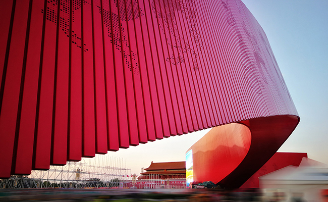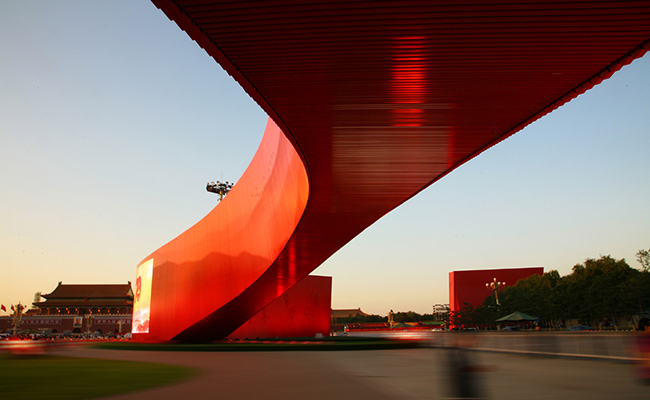 关于“红飘带——接力中国梦”主题景观雕塑的设计内涵,马赛说,由天安门广场中央的人民英雄纪念碑沿广场东西两侧向北延展,这寓意着红色基因、红色文化的永续传承。也因此,关于“红飘带”的颜色,设计团队最终选择了“国旗红”。